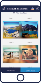 Die 1-Klick-Fotobuch App eignet sich ideal dafür, mit Ihren Smartphone-Bildern schnell und einfach ein attraktives Fotobuch zu gestalten. Selektieren Sie bis zu 98 Ihrer schönsten Schnappschüsse, wählen Sie ein schickes Farbschema und das gewünschte Buchformat – schon ist Ihr 1-Klick-Fotobuch fertig. Wir belichten Ihr 1-Klick-Fotobuch auf echtem Fotopapier aus und senden es umgehend nach der Fertigstellung an Ihre persönliche Adresse oder in Ihre gewünschte dm Filiale.