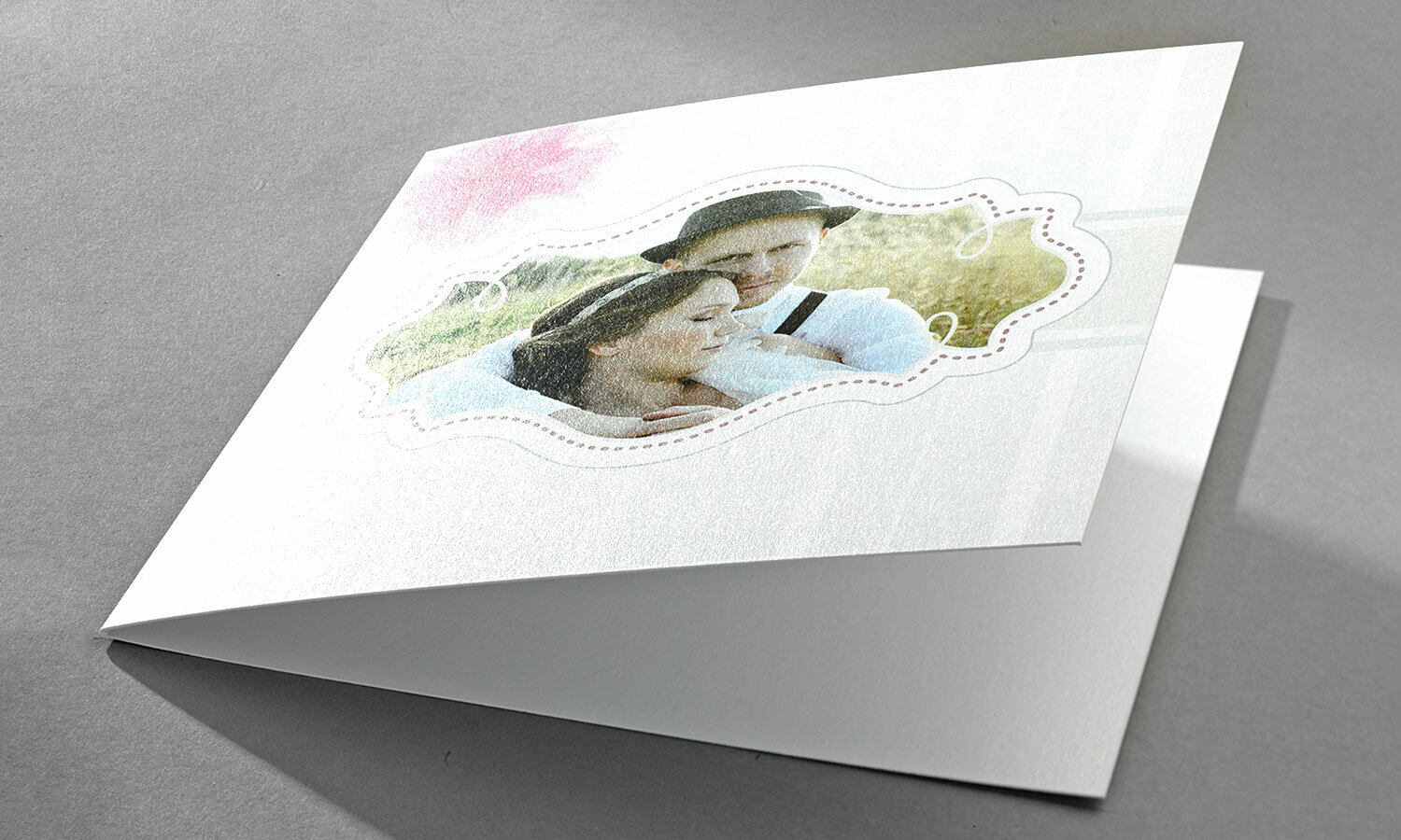 Die seidenmatte Papieroberfläche verleiht Ihrer Klappkarte eine edle Optik und eine sehr schöne Bildwirkung. Hochglanz-Karten erhalten eine Veredelung mit Gloss-Lack, für außergewöhnlich intensive Farben und schöne Kontraste. Das edle Strukturpapier verleiht Ihren Karten eine elegante Erscheinung durch die feine Leinenstruktur und ein angenehmes Gefühl beim Anfassen. Auf Weißgoldpapier erhalten Ihre Bilder einen faszinierenden Perlmuttschein und eine goldglänzende Farbwirkung.