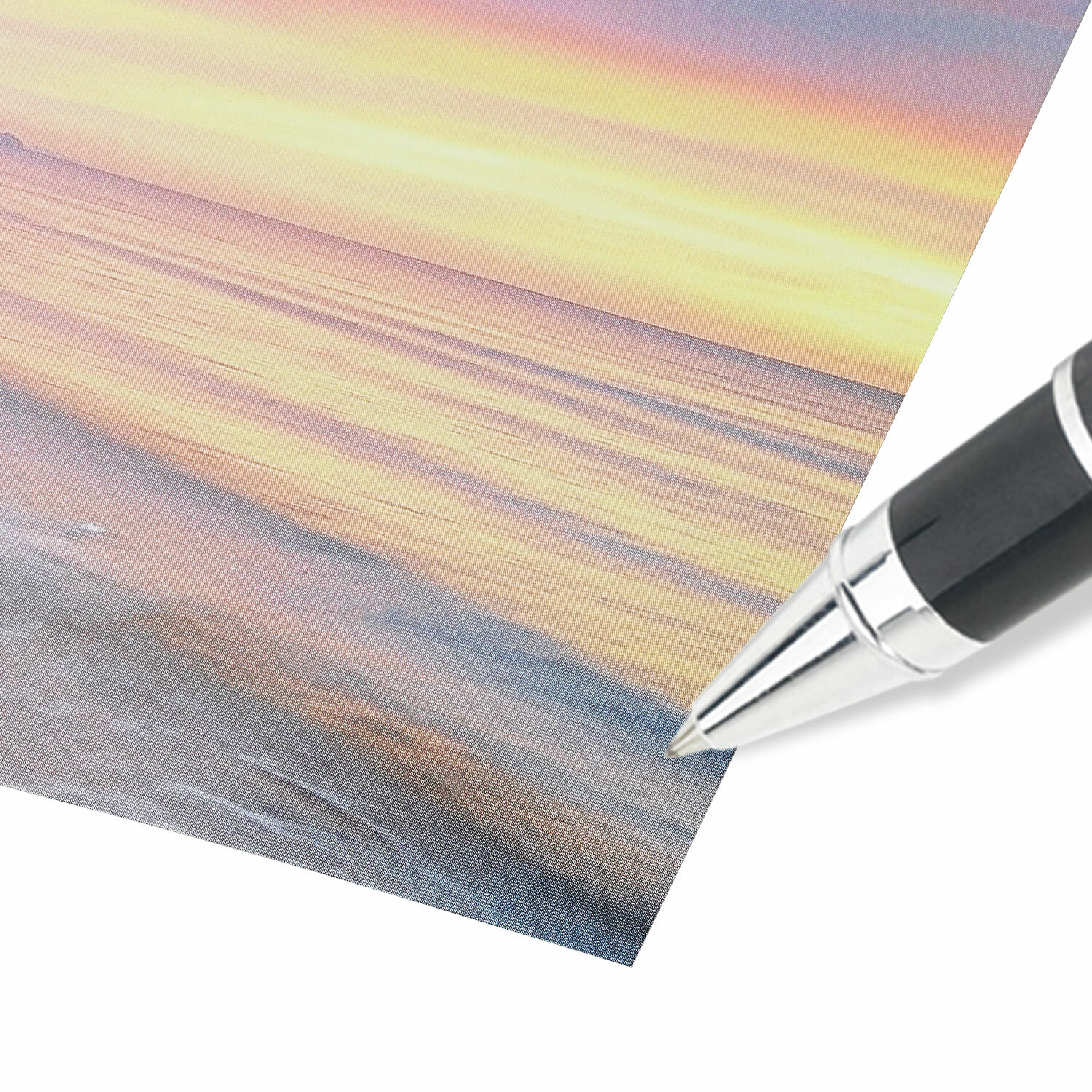 Beim Digitaldruckverfahren tragen wir Ihre gestalteten Layouts direkt mit Tintendruckern auf das hochwertige Markenpapier auf. Die seidenmatte Oberfläche sorgt für einen dezenten Schimmer bei direktem Lichteinfall, wodurch eine ausgesprochen elegante Optik entsteht. Der besondere Vorteil bei Kalendern im Digitaldruck ist die beschreibbare Oberfläche. Notieren Sie zum Beispiel Geburtstage oder wichtige Termine in Ihrem Kalender. Da Ihr geschriebener Text nicht verschmiert, haben Sie so mit Ihrem persönlichen Fotokalender gleichzeitig einen zuverlässigen Terminplaner.