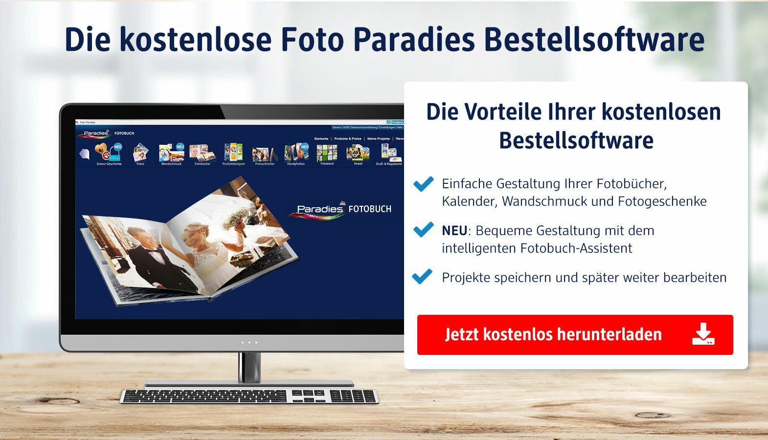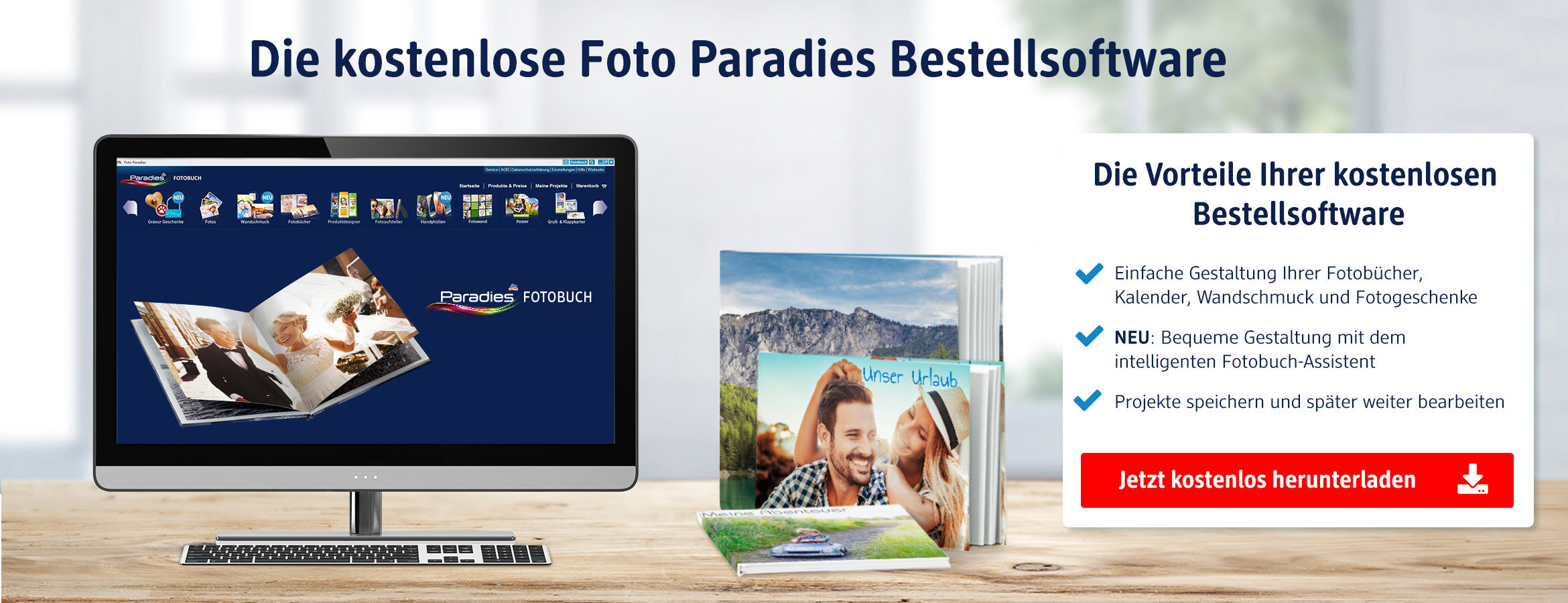 Profitieren Sie von den komfortablen Vorteilen der neuen Bestellsoftware. Mit zahlreichen Gestaltungselementen und Bearbeitungsfunktionen entwerfen Sie einzigartige Paradies Fotobücher und tolle Fotogeschenke für jeden Anlass.