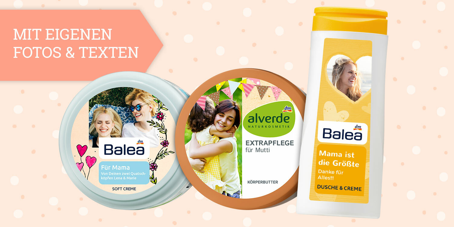 Schenken Sie individuelle Pflegeprodukte zum Muttertag, gestaltet mit Ihren eigenen Fotos. Das perfekte Geschenk um zu sagen: "Danke Mama!”