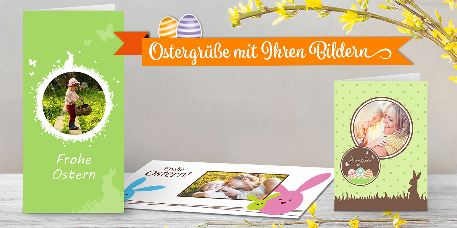 Senden Sie Ihre Ostergrüße mit einzigartigen Grußkarten im passenden Format. Wählen Sie Ihren Favoriten: Ob aus echtem Fotopapier, als Postkarte oder als Klappkarte mit unterschiedlichen Papieroberflächen.
