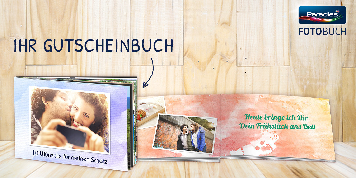 Entdecken Sie kreative Paradies Fotobuch Gutscheinvorlagen mit romantischen Ideen für sie und ihn. Diese können Sie im Paradies Fotobuch Softcover Mini 10x15 oder 13x19 platzieren. ❤