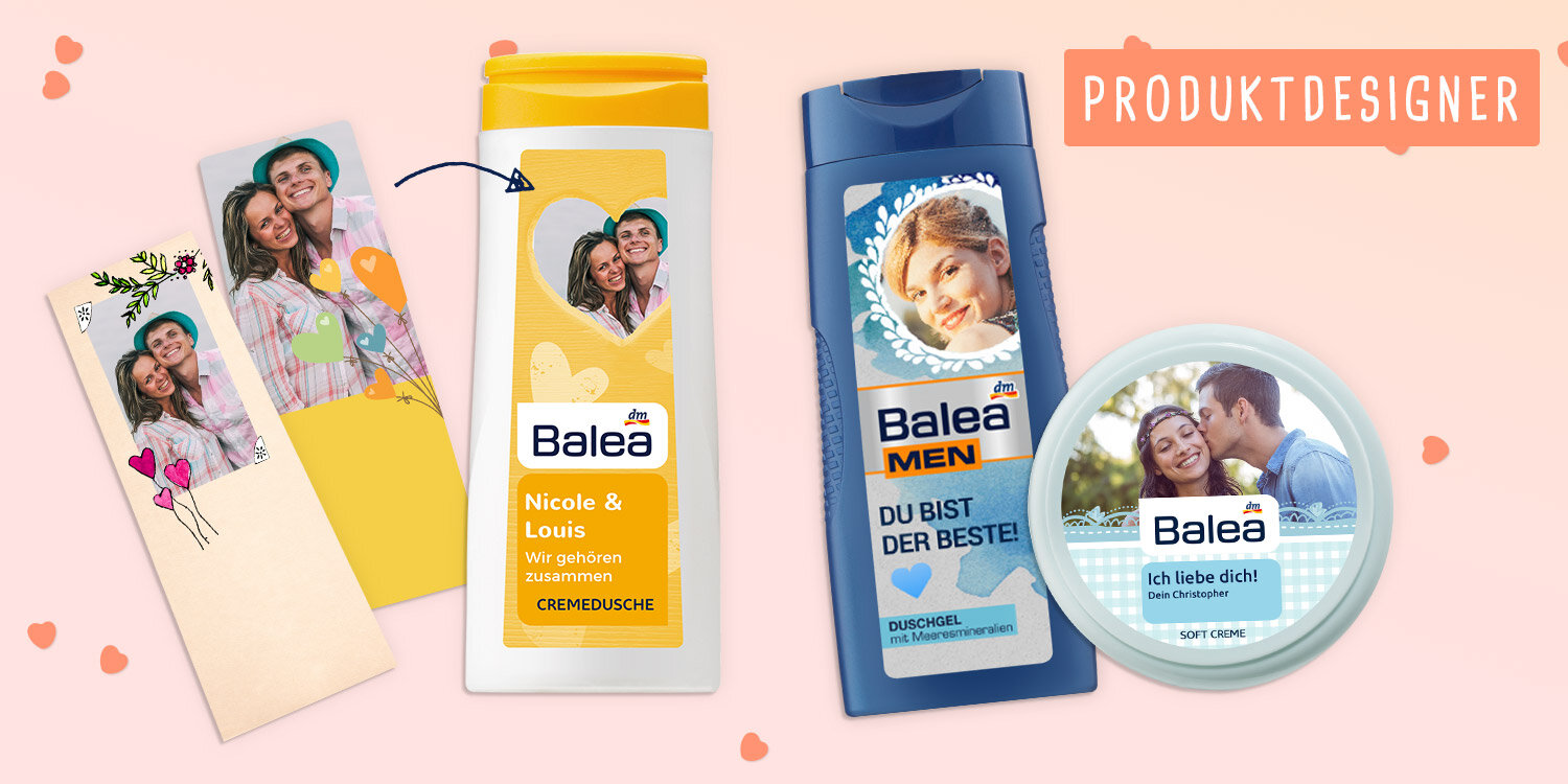 Gestalten Sie für Ihren Valentinstagstrip Ihr Lieblingsprodukt aus dem dm Pflegesortiment mit eigenem Bild – einfach und schnell im Paradies Produktdesigner. Eine originelle Geschenkidee für Ihre Liebsten. ❤